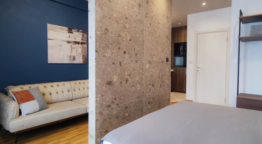 Comfortable Living Area: A cozy sofa, flat-screen TV, and high-speed Wi-Fi ensure you have everything you need for relaxation and entertainment.
