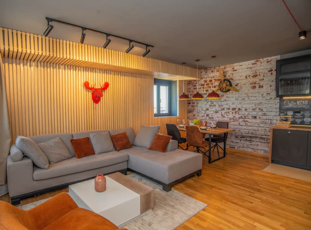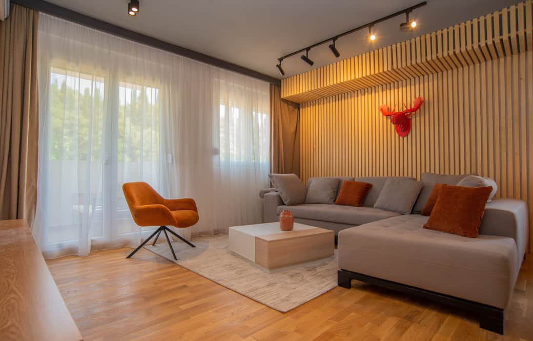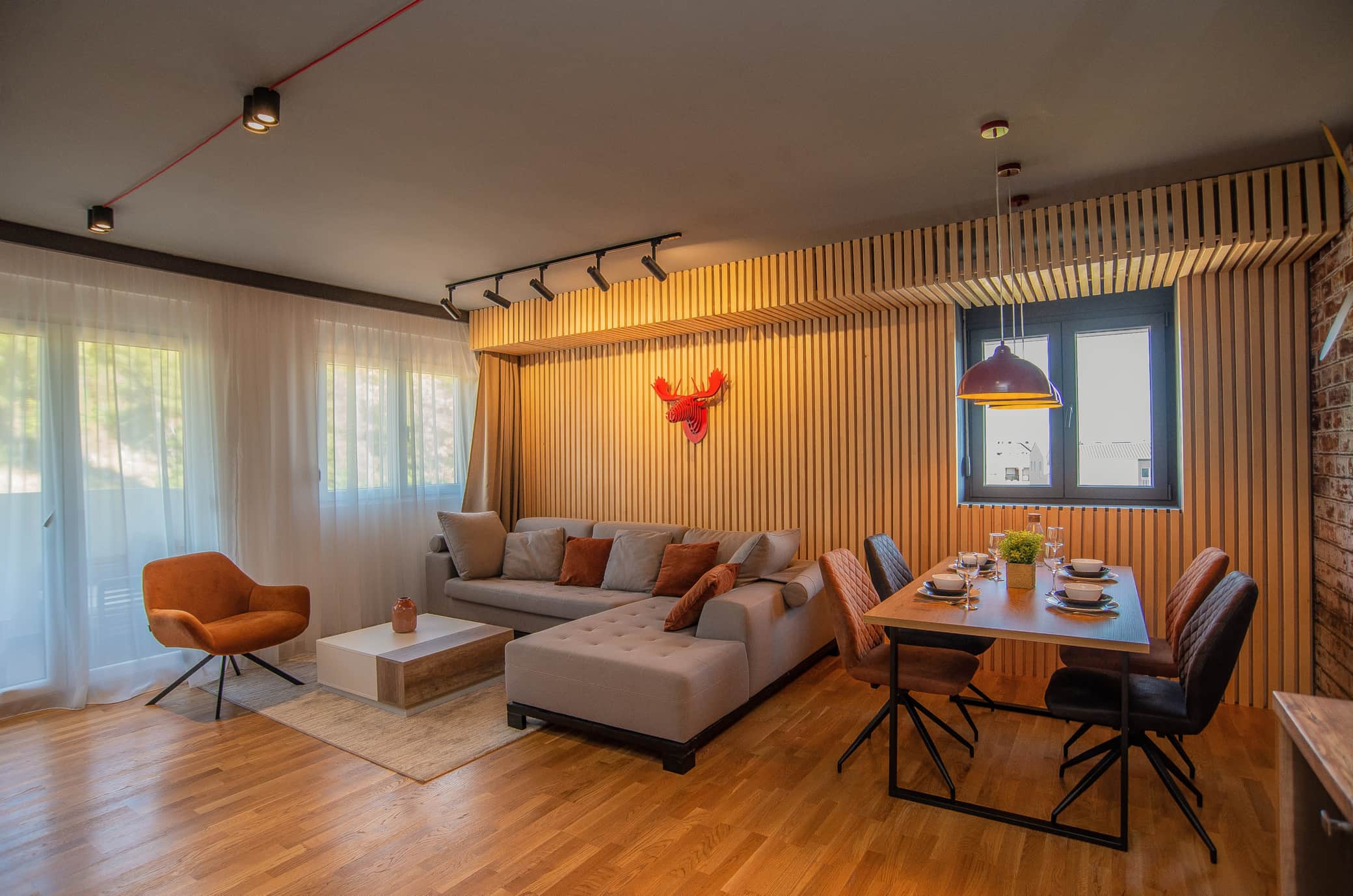 We've left no stone unturned in ensuring that every detail is perfect for your complete comfort. Our apartment boasts a beautifully designed kitchen, a bedroom with a comfortable king size bed and access to the balcony with a view of Ljubovic Hill and the skyline of Podgorica, a second bedroom with two comfortable beds, a spacious modern living room, and a fully equipped bathroom with all essentials like fluffy towels, shampoo, soap and more.